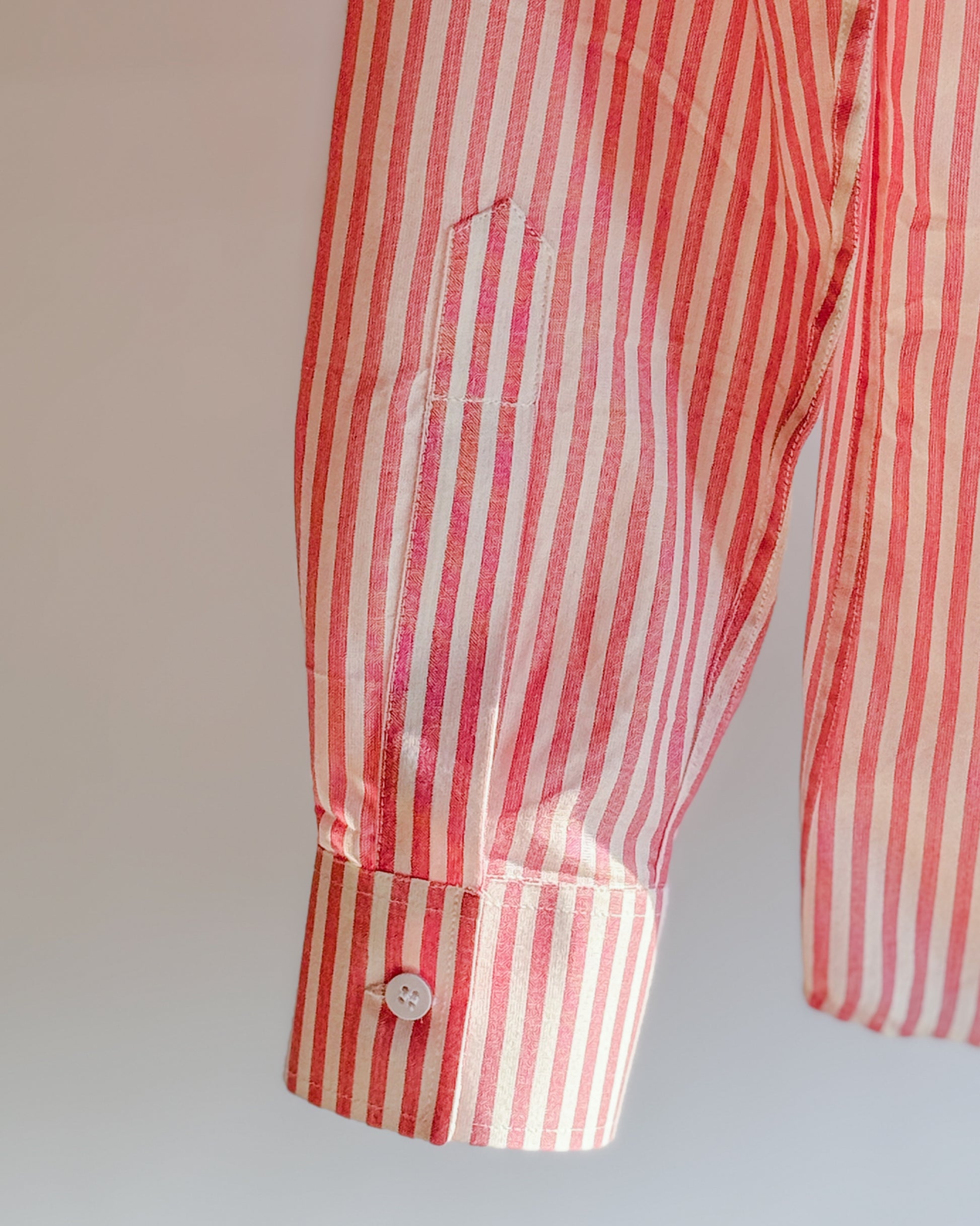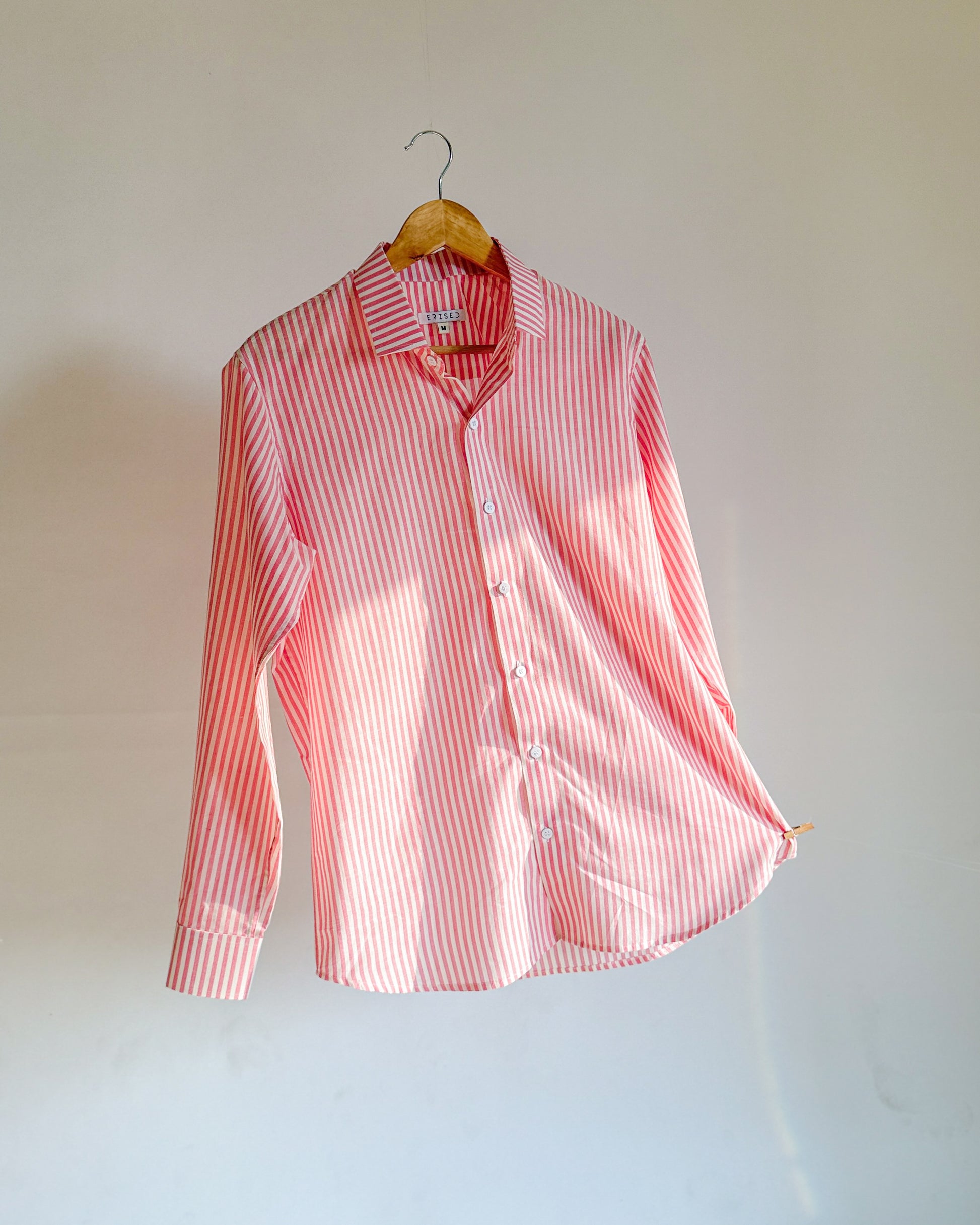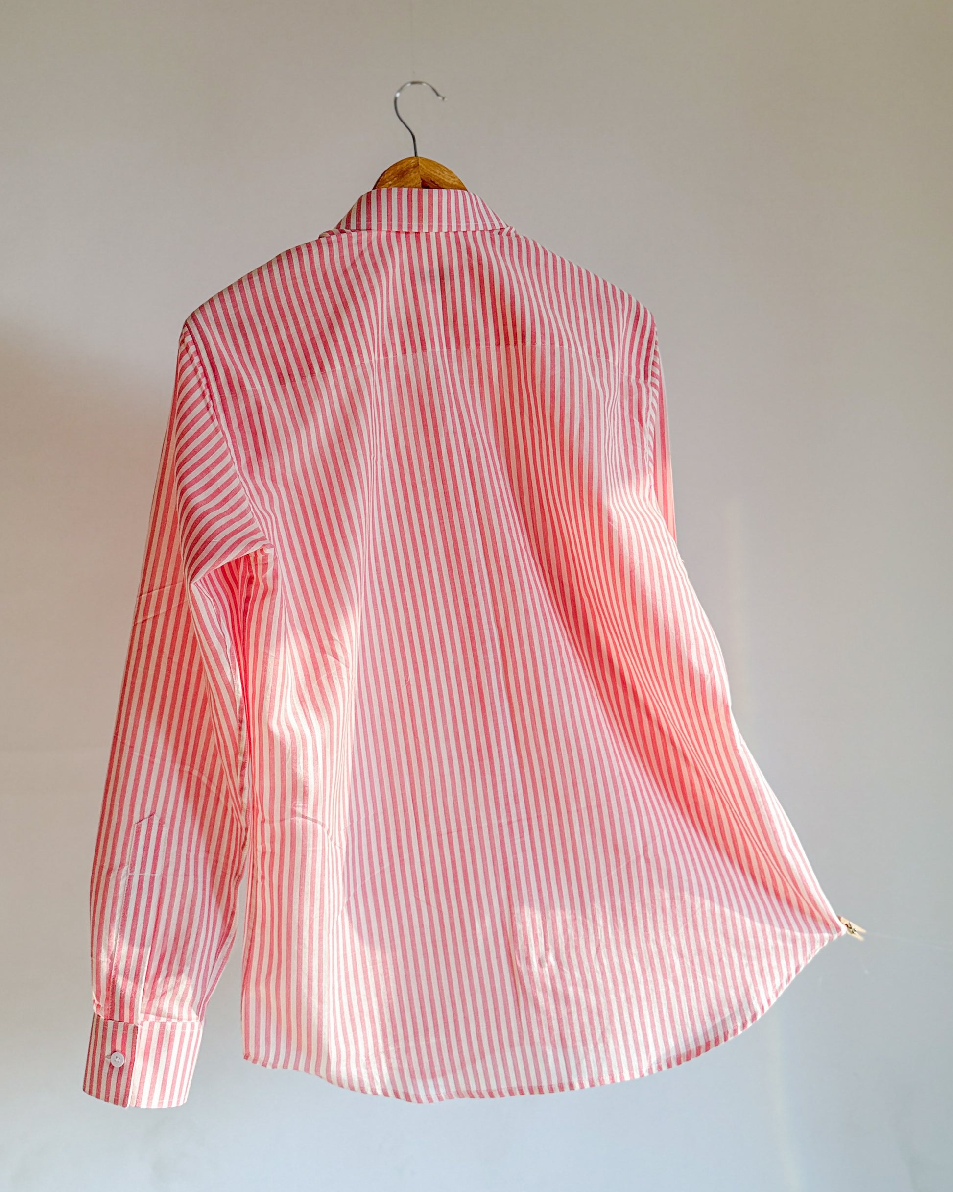 Fresh, crisp, and effortlessly polished, this pink and white striped shirt is a modern wardrobe essential. Cut from lightweight, breathable cotton, it offers a clean tailored look without feeling restrictive. The vertical stripes elongate the silhouette, while the structured collar and neatly finished cuffs add a refined touch.